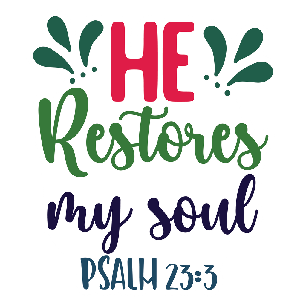 Inspirational Quote "He Restores My Soul PSALM 23:3, Sticker Gift" Motivational Sticker Vinyl Decal Motivation Stickers- 5" Vinyl Sticker Waterproof