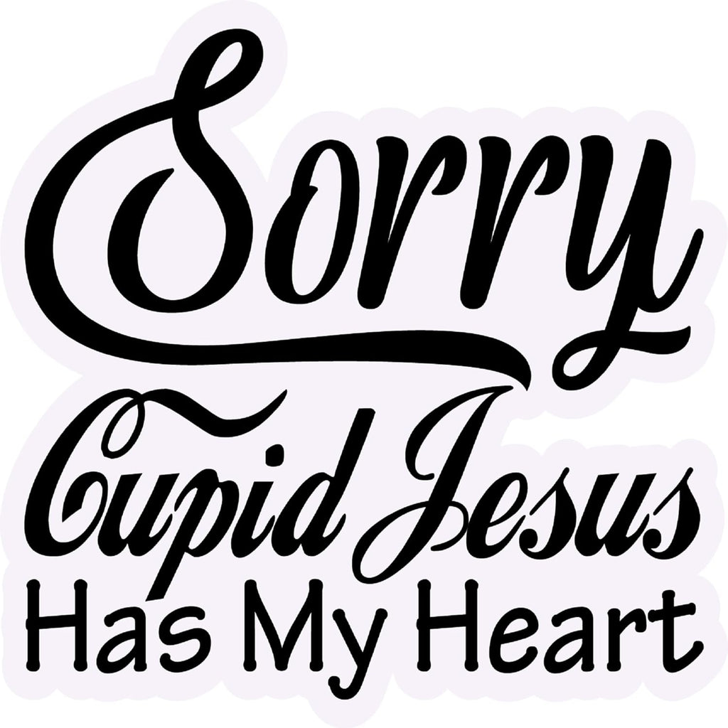 Inspirational Quote Sorry Cupid Jesus Has My Heart Motivational Sticker Vinyl Decal Motivation Stickers- 5" Vinyl Sticker Waterproof