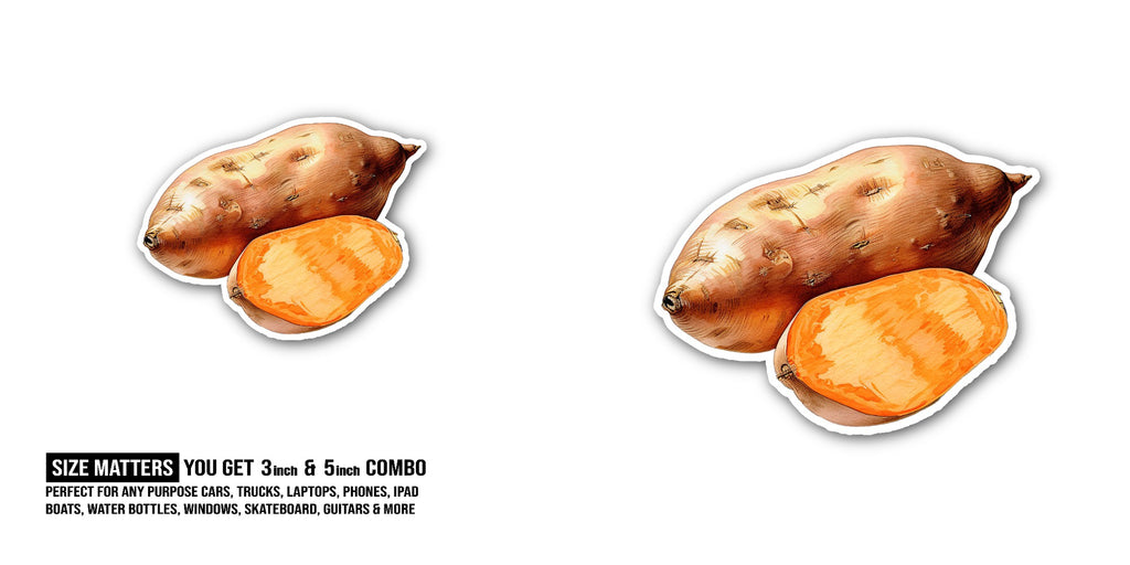 2 (Pieces) 3" and 5" Sweet potato Sticker, Waterproof Vinyl Decals for Many Purpose Like Cars, Trucks, Laptops, Phones, Windows and More