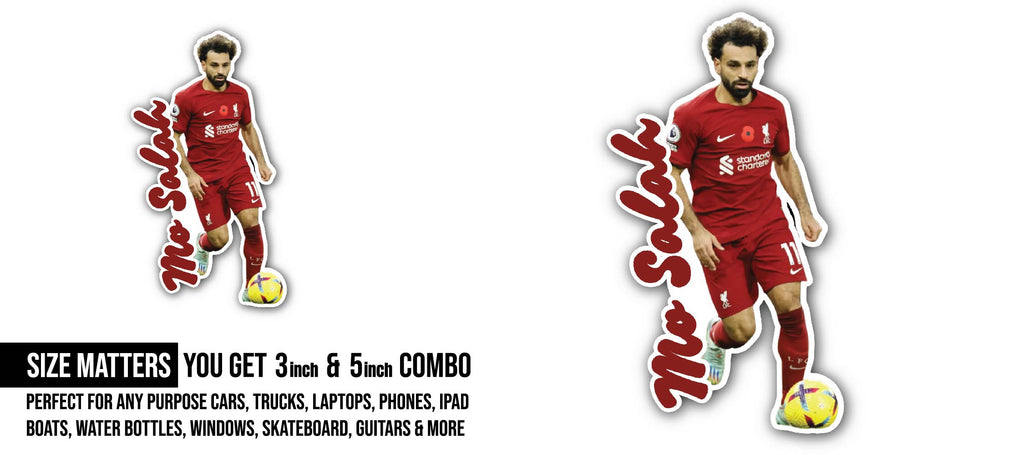 - SIZE MATTERS: Each decal measures approximately 5 inches and 3 inches (2) Pieces- 3 inches and 5 inches. Mo Salah Sticker DESIGN: This vinyl decal features a design perfect for customizing vehicles, trucks, laptops, windows, computers, bottles, flasks, skateboards, phones, walls, glass, RVs, boats, and more with a patriotic flair.