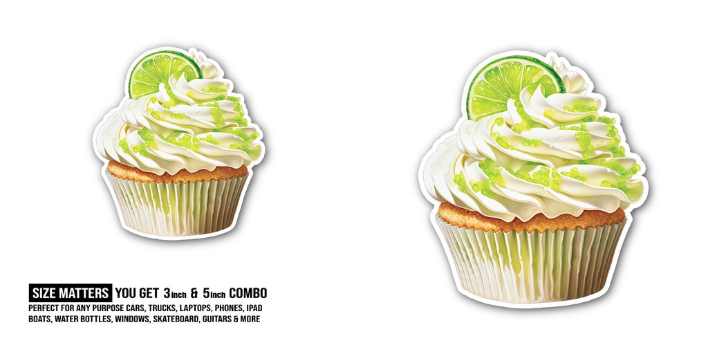 2 (Pieces) 3" and 5" A lime-flavored cupcake Sticker, Waterproof Vinyl Decals for Many Purpose Like Cars, Trucks, Laptops, Phones, Windows and More