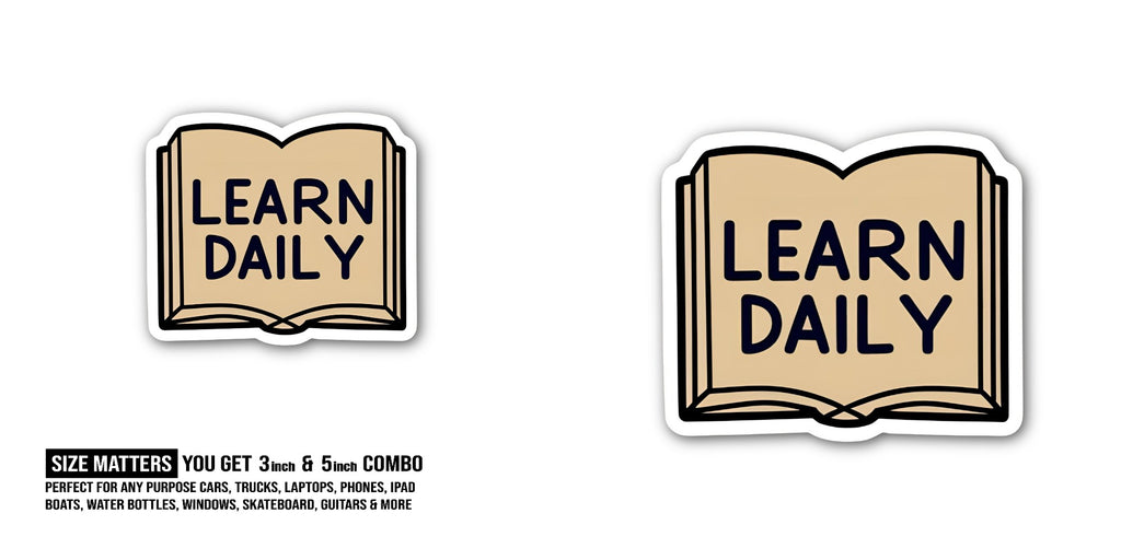 2 (Pieces) 3" and 5" Learn Daily Book Sticker, Waterproof Vinyl Decals for Many Purpose Like Cars, Trucks, Laptops, Phones, Windows and More