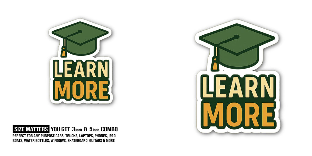 2 (Pieces) 3" and 5" Learn More Sticker, Waterproof Vinyl Decals for Many Purpose Like Cars, Trucks, Laptops, Phones, Windows and More