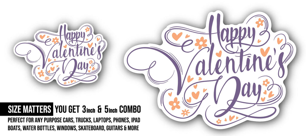 - SIZE MATTERS: Each decal measures approximately 5 inches and 3 inches (2) Pieces- 3 inches and 5 inches. Happy Valentine Day Text Sticker DESIGN: This vinyl decal features a design perfect for customizing vehicles, trucks, laptops, windows, computers, bottles, flasks, skateboards, phones, walls, glass, RVs, boats, and more with a patriotic flair.
