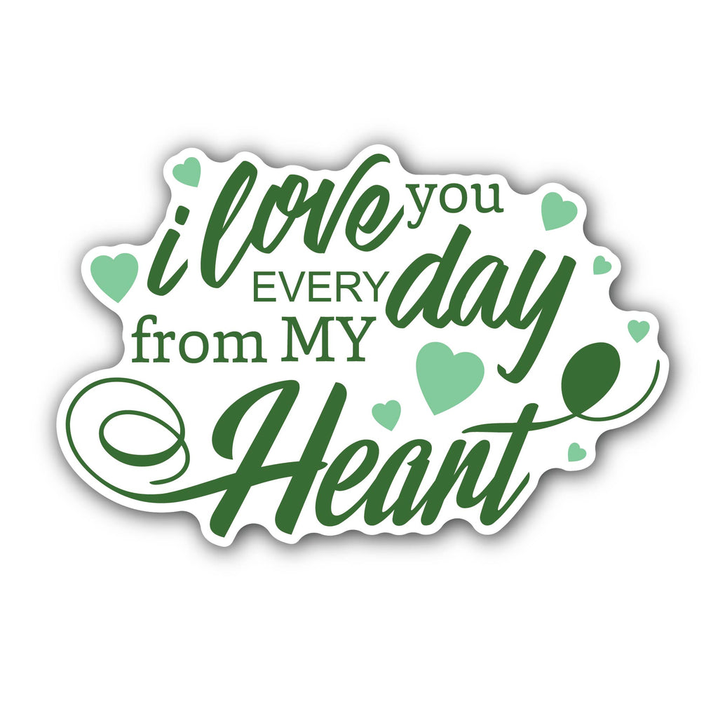 - SIZE MATTERS: Each decal measures approximately 5 inches and 3 inches (2) Pieces- 3 inches and 5 inches. Green Color I Love You Everyday from My hart Text Sticker DESIGN: This vinyl decal features a design perfect for customizing vehicles, trucks, laptops, windows, computers, bottles, flasks, skateboards, phones, walls, glass, RVs, boats, and more with a patriotic flair.