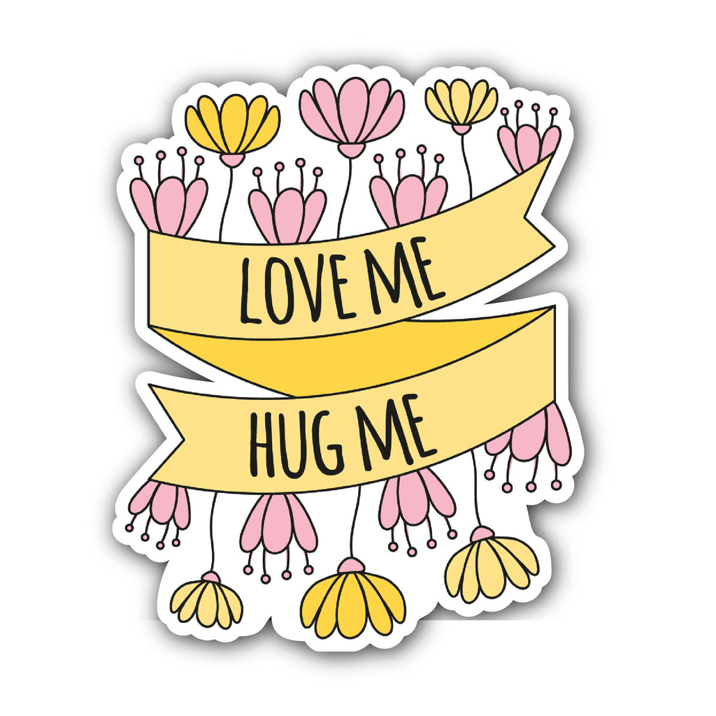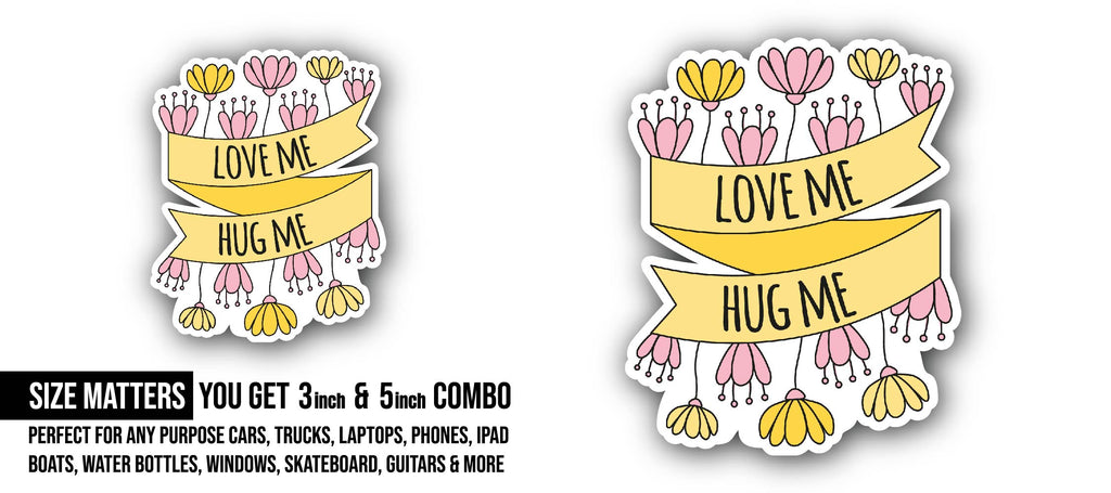 2 (Pieces) 3" and 5" Love Me and Hug Me Sticker, Waterproof Vinyl Decals for Many Purpose Like Cars, Trucks, Laptops, Phones, Windows and More
