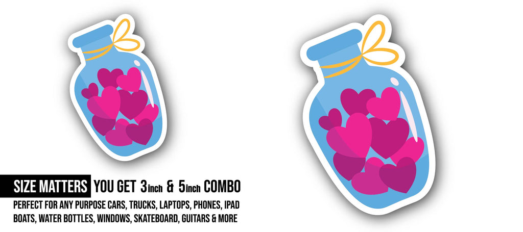 2 (Pieces) 3" and 5" Jar with Heart Sticker, Waterproof Vinyl Decals for Many Purpose Like Cars, Trucks, Laptops, Phones, Windows and More