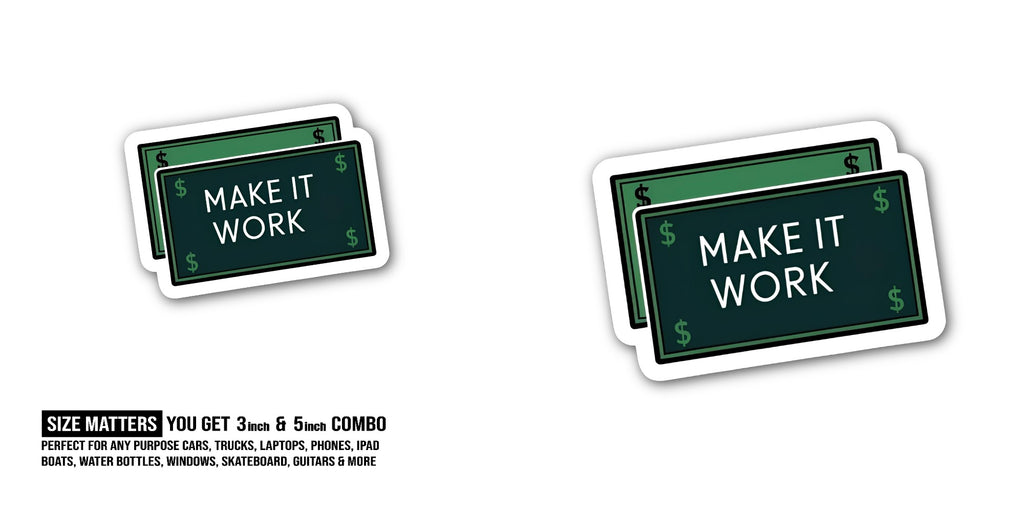 2 (Pieces) 3" and 5" MAKE IT WORK Sticker, Waterproof Vinyl Decals for Many Purpose Like Cars, Trucks, Laptops, Phones, Windows and More