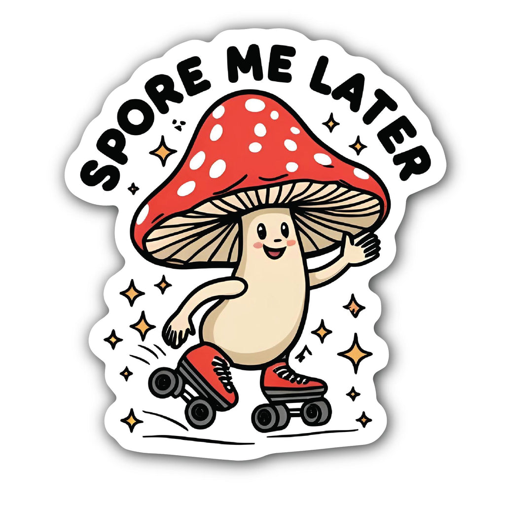 - SIZE MATTERS: Each decal measures approximately 5 inches and 3 inches (2) Pieces- 3 inches and 5 inches. Spore Me Later Mushroom Sticker DESIGN: This vinyl decal features a design perfect for customizing vehicles, trucks, laptops, windows, computers, bottles, flasks, skateboards, phones, walls, glass, RVs, boats, and more with a patriotic flair.