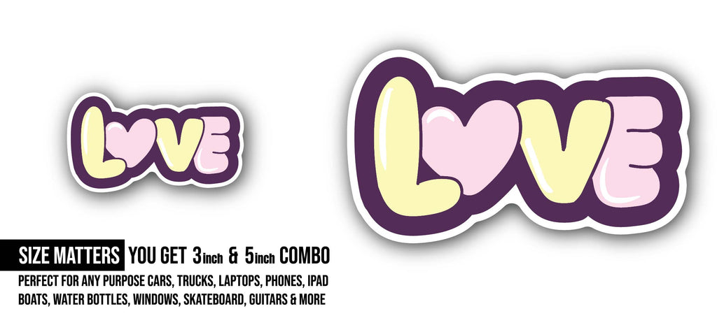 2 (Pieces) 3" and 5" Love Text Sticker, Waterproof Vinyl Decals for Many Purpose Like Cars, Trucks, Laptops, Phones, Windows and More