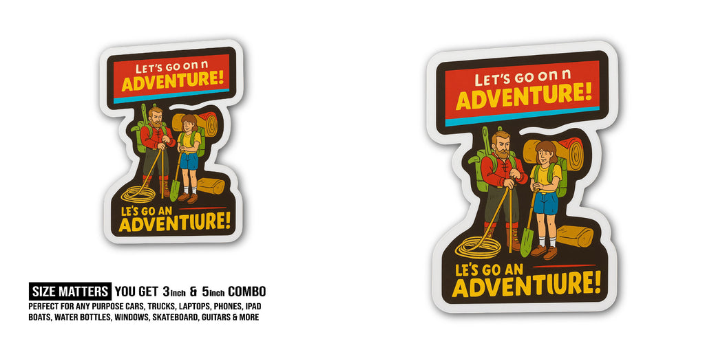 2 (Pieces) 3" and 5" Let's Go an ADVENTIURE Sticker, Waterproof Vinyl Decals for Many Purpose Like Cars, Trucks, Laptops, Phones, Windows and More