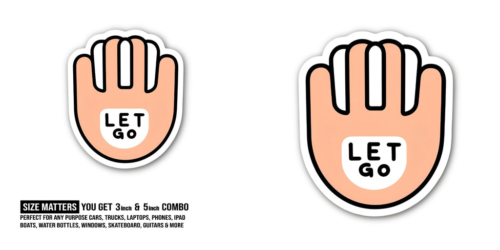 2 (Pieces) 3" and 5" Let Go Hand Sticker, Waterproof Vinyl Decals for Many Purpose Like Cars, Trucks, Laptops, Phones, Windows and More