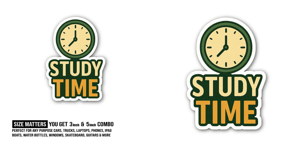 2 (Pieces) 3" and 5" STUDY TIME Sticker, Waterproof Vinyl Decals for Many Purpose Like Cars, Trucks, Laptops, Phones, Windows and More