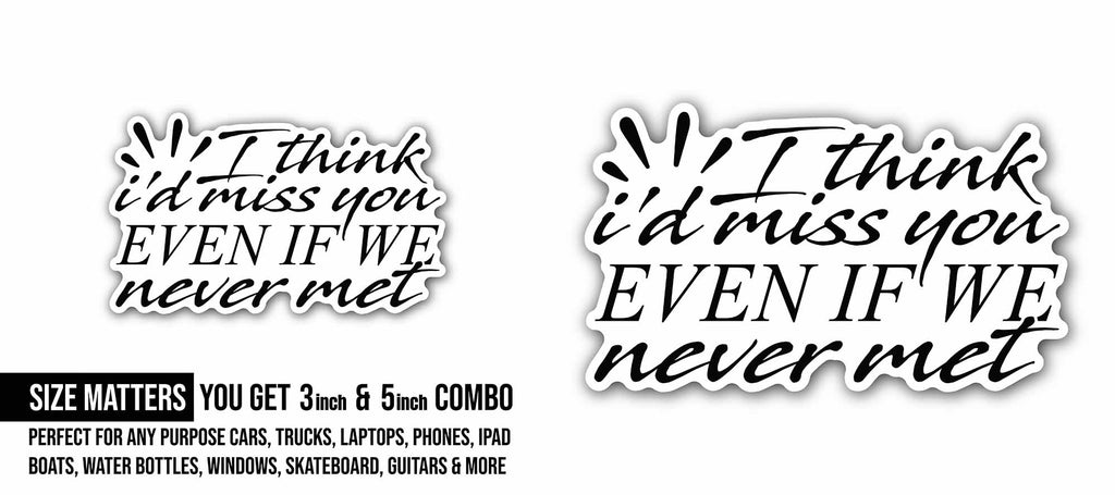2 (Pieces) 3" and 5" I Think I'd Miss You Even If We Never Met Sticker, Waterproof Vinyl Decals for Many Purpose Like Cars, Trucks, Laptops, Phones, Windows and More