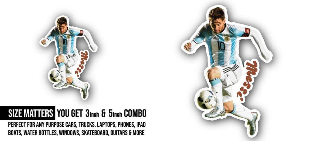 Lionel Messi Sticker, Waterproof Vinyl Decal Sticker Indoor Or Outdoor 2 (Pieces) 3" and 5"