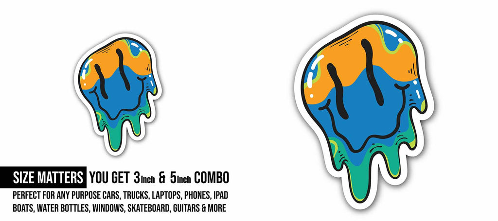 2 (Pieces) 3" and 5" Melted Smile Sticker, Waterproof Vinyl Decals for Many Purpose Like Cars, Trucks, Laptops, Phones, Windows and More