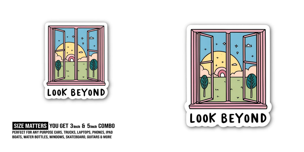 2 (Pieces) 3" and 5" LOOK BEYOND Sticker, Waterproof Vinyl Decals for Many Purpose Like Cars, Trucks, Laptops, Phones, Windows and More