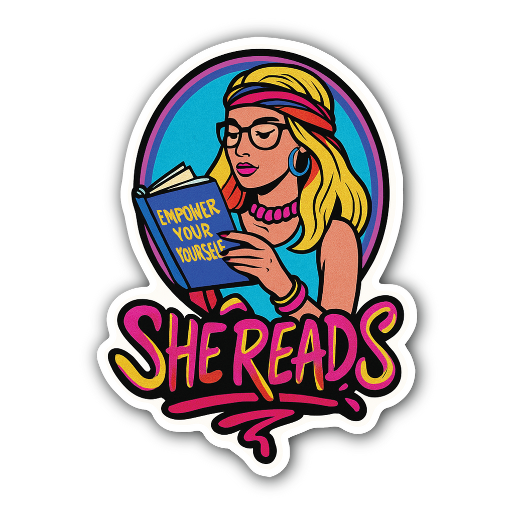 2 (Pieces) 3" and 5" She Reads Sticker, Waterproof Vinyl Decals for Many Purpose Like Cars, Trucks, Laptops, Phones, Windows and More