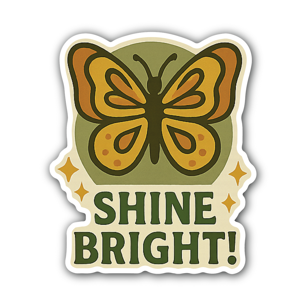 2 (Pieces) 3" and 5" Shine bright! Butterfly Sticker, Waterproof Vinyl Decals for Many Purpose Like Cars, Trucks, Laptops, Phones, Windows and More