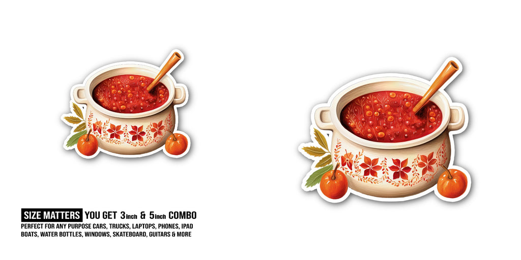 - SIZE MATTERS: Each decal measures approximately 5 inches and 3 inches (2) Pieces- 3 inches and 5 inches. Yummy Tomato Soup Sticker DESIGN: This vinyl decal features a design perfect for customizing vehicles, trucks, laptops, windows, computers, bottles, flasks, skateboards, phones, walls, glas