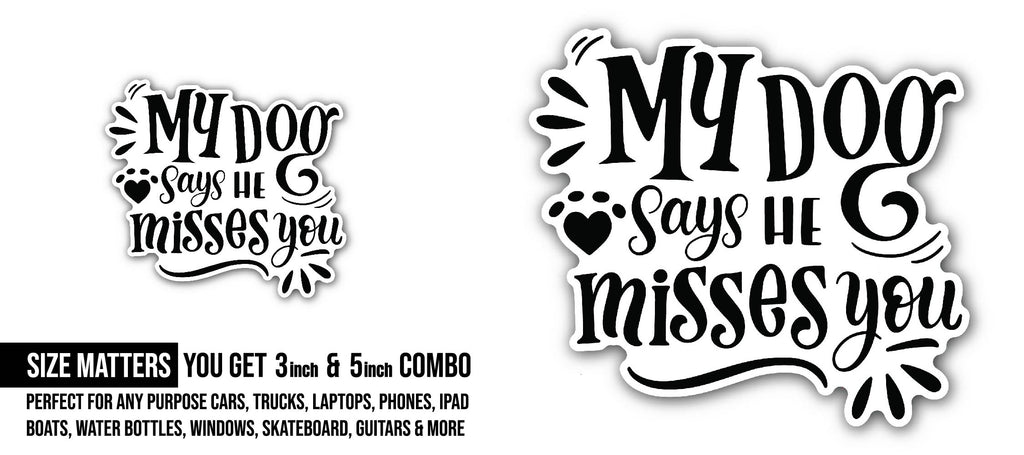 2 (Pieces) 3" and 5" My Dog Says He Misses You Sticker, Waterproof Vinyl Decals for Many Purpose Like Cars, Trucks, Laptops, Phones, Windows and More