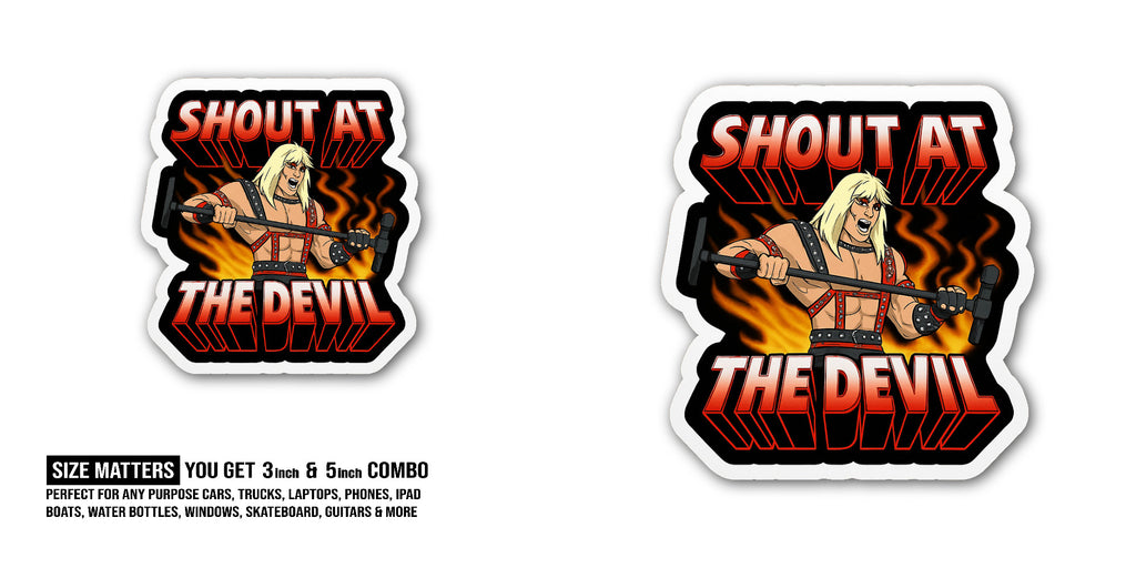 2 (Pieces) 3" and 5"SHOUT AT THE DEVIL Sticker, Waterproof Vinyl Decals for Many Purpose Like Cars, Trucks, Laptops, Phones, Windows and More