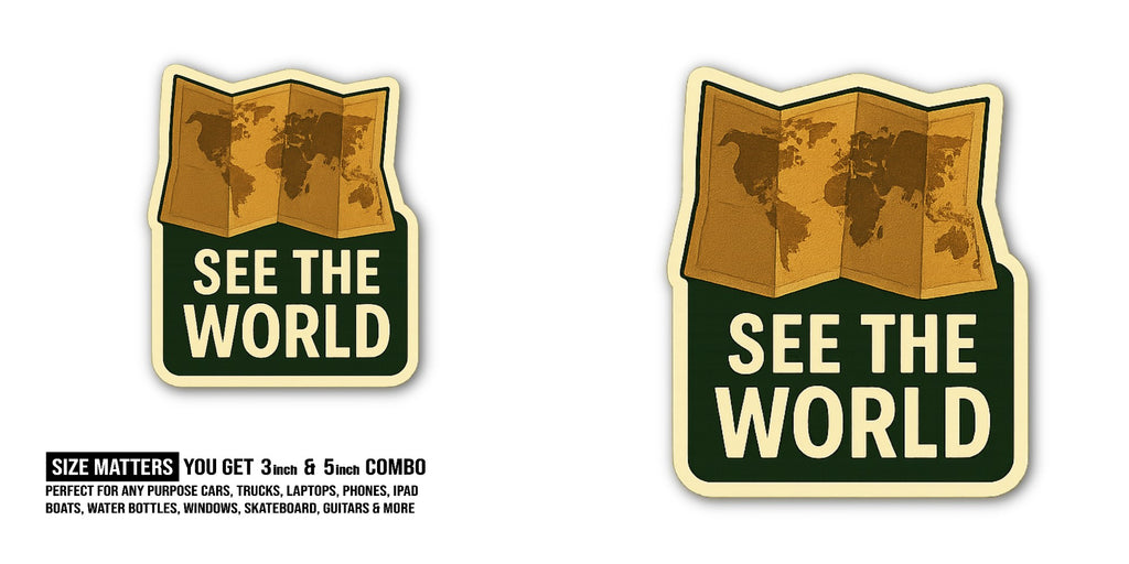 2 (Pieces) 3" and 5" See The World Map Sticker, Waterproof Vinyl Decals for Many Purpose Like Cars, Trucks, Laptops, Phones, Windows and More