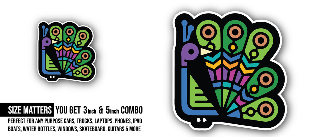 2 (Pieces) 3" and 5" Stylized Peacock Sticker, Waterproof Vinyl Decals for Many Purpose Like Cars, Trucks, Laptops, Phones, Windows and More