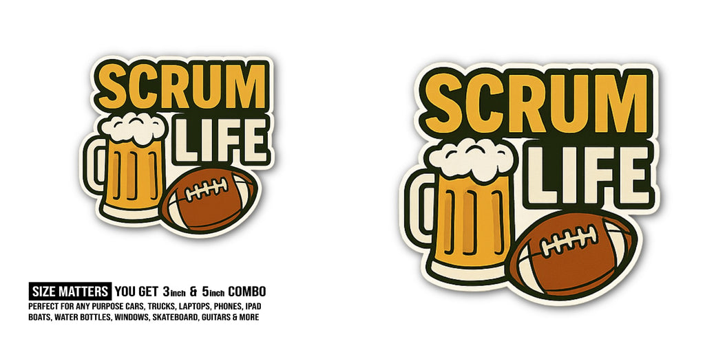 2 (Pieces) 3" and 5" SCRUM LIFE With Beer Cup Sticker, Waterproof Vinyl Decals for Many Purpose Like Cars, Trucks, Laptops, Phones, Windows and More