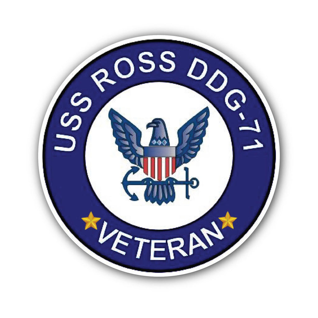 - SIZE MATTERS: Each decal measures approximately 5 inches and 3 inches (2) Pieces- 3 inches and 5 inches. USS Ross DDG-71 Veteran Sticker DESIGN: This vinyl decal features a design perfect for customizing vehicles, trucks, laptops, windows, computers, bottles, flasks, skateboards, phones, walls, glass, RVs, boats, and more with a patriotic flair.