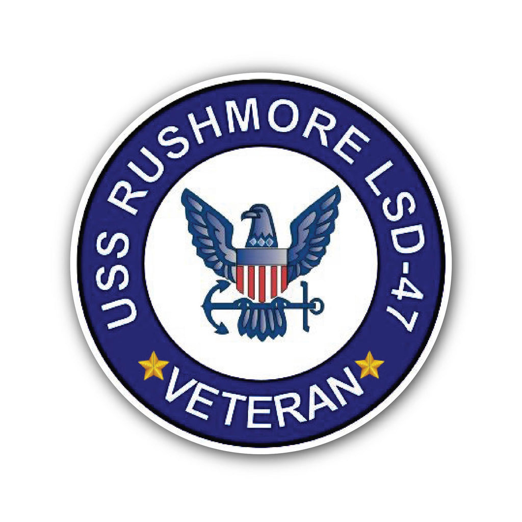 - SIZE MATTERS: Each decal measures approximately 5 inches and 3 inches (2) Pieces- 3 inches and 5 inches. USS Rushmore LSD-47 Veteran Sticker DESIGN: This vinyl decal features a design perfect for customizing vehicles, trucks, laptops, windows, computers, bottles, flasks, skateboards, phones, walls, glass, RVs, boats, and more with a patriotic flair.