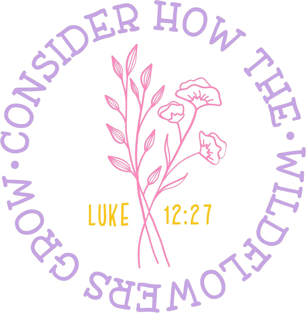 Inspirational Quote Consider How The Wildflowers Grow Luke 12:27" Motivational Sticker Vinyl Decal Motivation Stickers- Choose in 3”, 5” or 7” Vinyl Sticker Waterproof for Cars, Laptop, Phone