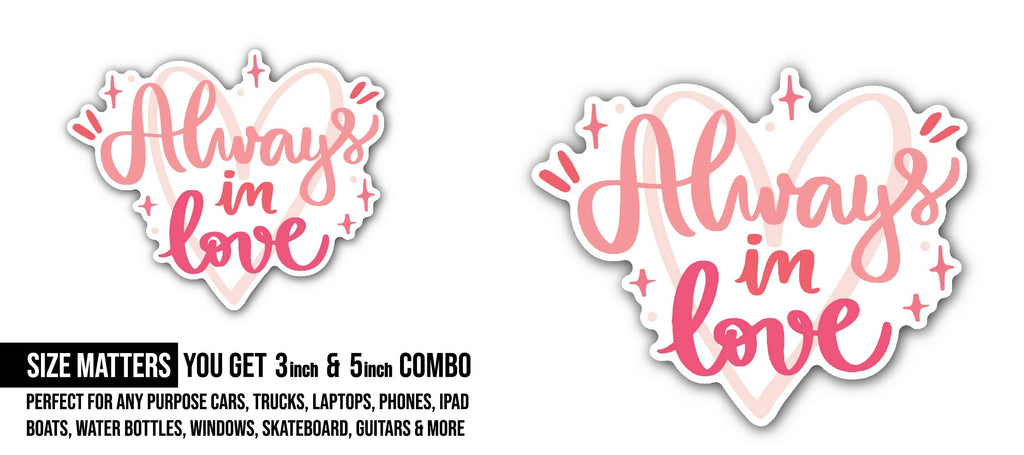 2 (Pieces) 3" and 5" Always in Love Sticker, Waterproof Vinyl Decals for Many Purpose Like Cars, Trucks, Laptops, Phones, Windows and More