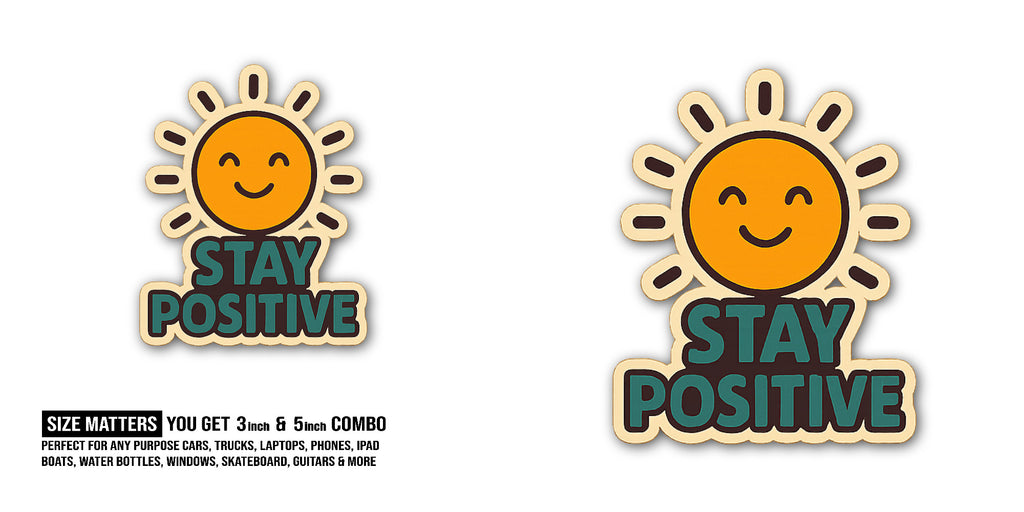 2 (Pieces) 3" and 5" STAY POSITIVE Sticker, Waterproof Vinyl Decals for Many Purpose Like Cars, Trucks, Laptops, Phones, Windows and More