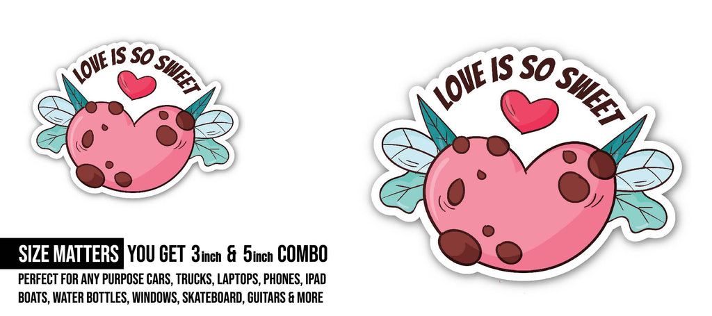2 (Pieces) 3" and 5" Love is So Sweet Sticker, Waterproof Vinyl Decals for Many Purpose Like Cars, Trucks, Laptops, Phones, Windows and More